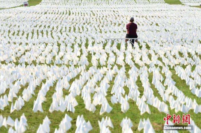 资料图:当地时间9月18日,美国首都华盛顿国家广场上插着数十万白色旗帜,悼念新冠逝者。 中新社记者 陈孟统 摄