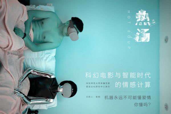 以上是AI版的基本情节,背后的问题就是“情感计算”,也是这次研讨会的中心议题。我当初带学生拍摄先导海报时,就想表达这个意图。男女主角戴着VR眼镜,女主角像个机器人,却是人性与情商的代表,机器人外表暗示她被数据化之后的存在形态。男主角外表是人类模样,但他恰恰是人类理性的极致代表,是数字思维的肉身化。这种交错设置想打破以往“人-机”二元对立模式。它不再是说人类具有人性,机器具有机器性;而是说面对一个智能体,我们将越来越无法区分它是人类还是机器,也无需区分,因为人性可以被数据化表达,人性也并不等于感性,机器性同样是人性的一部分。先导海报也是从这个角度对伯格曼的《婚姻生活》做出智能版的延伸和致敬。