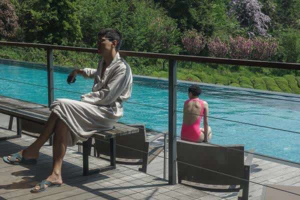 我也一直在看四个小故事怎样发生勾连,它的连接点在哪儿。我们做电影的都知道,一部电影如果是花开两朵,各表一枝的话,总可以找到它连接的空间和时间在哪里。当然可以写四个完全不相干的故事,也不交代他们的连接,有这样的电影。但一般来说,亮点通常是在连接点上。到最后那场戏,因为片名是“热汤”,我就想肯定会在游泳池这锅汤里,把几个不同的饺子都下进去,但是人物并没有都出现。直到女演员一猛子扎下去,我突然想到她冒出来肯定是另一个人。果然如此,我就觉得很开心,虽然这么晚才猜到。按理说我们吃专业饭的应该马上就想到,肯定要比别人快一些,说明这些表现手段还是很有意思的。