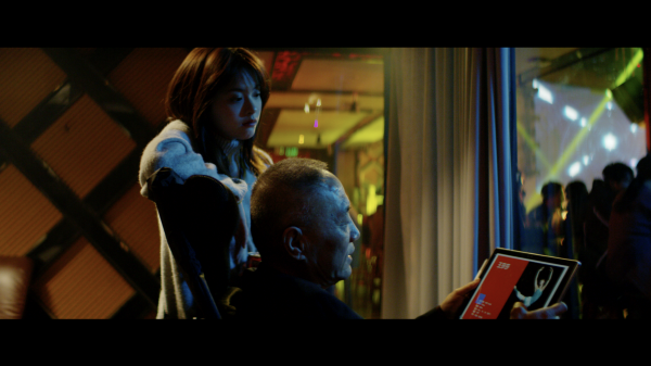 我当时在剧本上的主要“贡献”是试图增加它的现实感。比如老屠的情人这条线,希望能让人物落地,让社会关系能够进来,所以我就建议酒吧这条线到浙江义乌去拍,通过两人的连线视频把浙江世界工厂的背景带出来。这种成分我本来希望能有更多,现在虽然不太多,但还是基本保留了中国和世界市场的关系。当时刚好赶上特朗普大选,和法国“黄马甲”运动,都跟义乌有关系。特朗普和希拉里竞选,义乌小商品订单的大数据提前锁定了竞选结果,老屠情人的工厂里正在制作的就是销往法国的黄马甲。这些不仅与我们的大数据主题契合,还为这个主题注入了很强的现实感。所以我极力推动章明导演,让这个故事能跟更广大的世界产生联系,在人物命运里体现出来。我最不满意的是之前那个黑社会的版本,太套路化了。所以想用这种现实感来平衡那种套路。还有后面的无人机送货,也是我加进来的,本来准备在夏天拍,所以无人机原本送的是荔枝。后来拖到冬天才拍,就改成了送酒酿圆子。