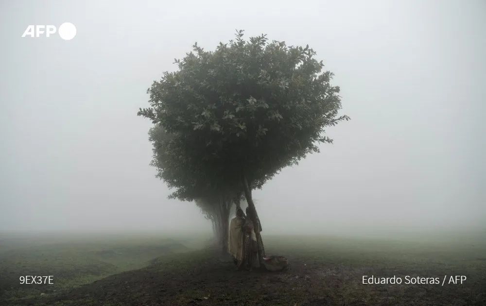 7月13日,埃塞俄比亚贡达尔市东北70公里,达巴特村附近,孩子们站在树下。这里将建起收容厄立特里亚难民的难民营。Eduardo Soteras/法新社