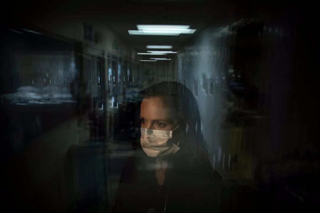 这张照片运用多重曝光的手法,拍摄了4月6日第一批在加护病房治疗新冠肺炎患者的护士Lisa Lampkin“站在”一间位于加州的空ICU病房里的场景。Jae C. Hong/美联社