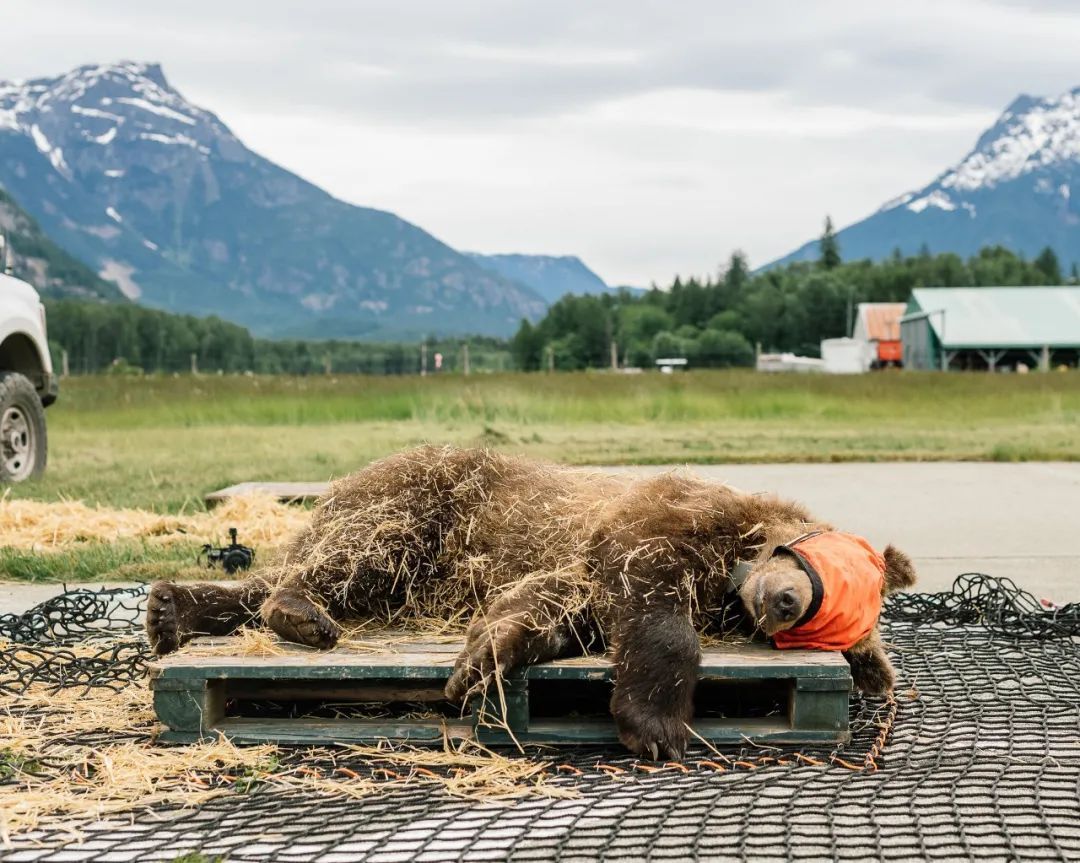 6月1日,加拿大不列颠哥伦比亚省贝拉库拉,在被直升机带回野外之前,一只名叫亚瑟的灰熊被注射了镇静剂。研究人员正在追踪收容所中养大的孤儿幼崽,观察它们在“野化”后是否能茁壮成长。Alana Paterson为《纽约时报》报道