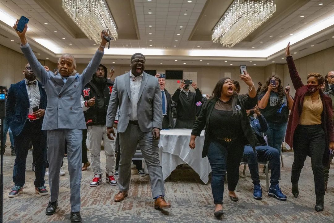 4月20日,美国明尼阿波利斯,乔治·弗洛伊德的家人、密友和顾问聚集在一起,当亨内平县法官宣读明尼阿波利斯前警官德雷克·肖万的最终有罪判决时,众人一起欢呼。2020年5月25日,以德雷克·肖万为首的四名美国警察暴力执法致非裔男子乔治·弗洛伊德死亡。涉事前警察肖万被判处22年6个月刑期。Ruddy Roye为《时代》周刊报道