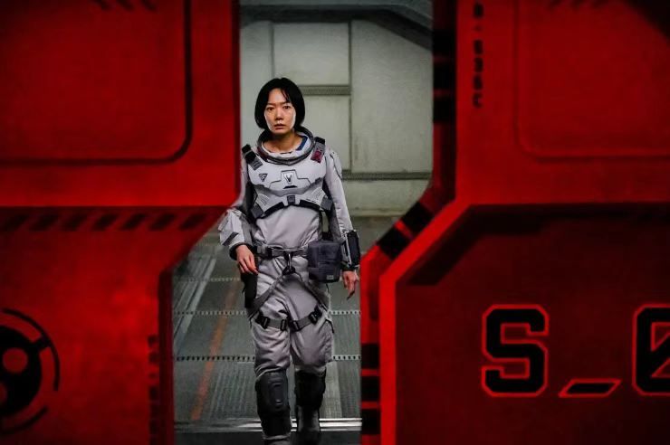 人物专业技能堪忧,更缺乏角色弧光。男主角韩队长也被处理得很随便,像戴了面具的工具人全程无内在变化。为了让他更像个人,只能穿插若干他在地球的父女情,为面具添一层表情。用过去的闪回为当下人物增加层次是一种常见手法。当剧情进行中不足以刻画人物内心时,强行添加往事闪回只会更牵强,如同破衣上打补丁。编剧的想象力匮乏到什么程度呢,竟然让韩队长和许成泰扮演的宇航局高层共享同一个补丁——父女情。不仅角色扁平,小分队成员间从头到尾都未建立起人与人之间的联系,团队精神则完全没有。观众因此无法对角色共情,人一个接一个死掉也就显得无足轻重。若再把死亡拍得冗长和隆重,只会让人更想快进。