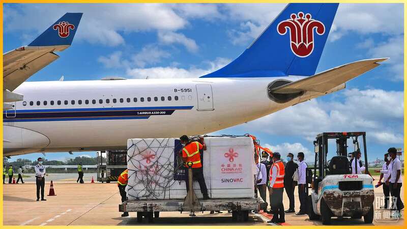 △2021年11月17日,柬埔寨金边国际机场,当地政府迎接中国援柬第七批新冠疫苗。(图/视觉中国)