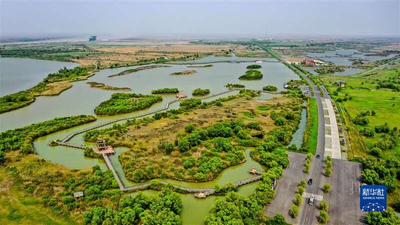 这是2021年5月13日拍摄的山东黄河三角洲国家级自然保护区景色(无人机照片)。新华社记者 郭绪雷 摄