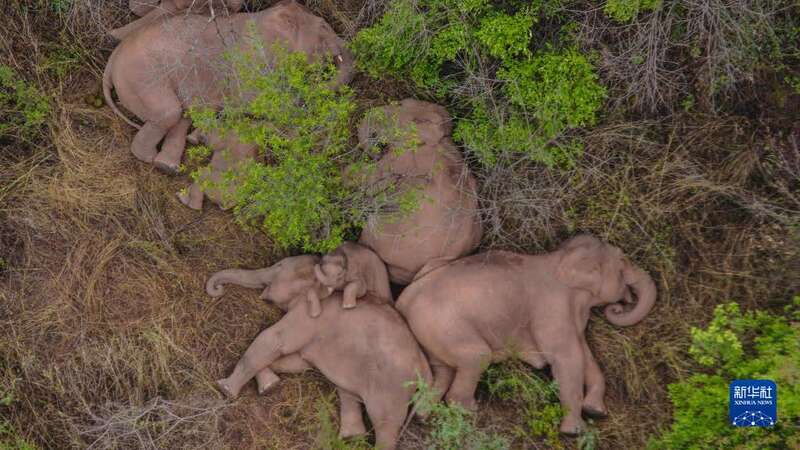 这是2021年6月7日在云南省昆明市晋宁区夕阳彝族乡拍摄的野象(无人机照片)。新华社发