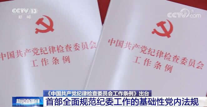 央视网消息:日前,中共中央印发《中国共产党纪律检查委员会工作条例》,这是我们党历史上第一部全面规范纪委工作的基础性党内法规。
