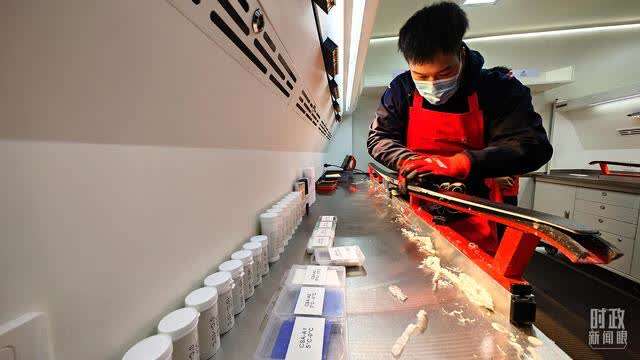 △工作人员正在给雪板上蜡。目前国内的雪蜡联合攻关团队正在研制更适合大众群体使用的液体雪蜡。(总台央视记者彭汉明拍摄)