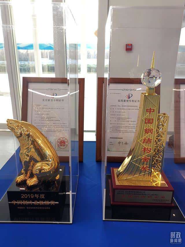 △2019年,“冰丝带”分别荣获中国制冷北极熊奖和中国钢结构金奖。(总台央视记者杨立峰拍摄)