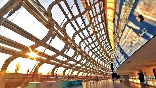 国家速滑馆有一个形象的名字——“冰丝带”。它通体晶莹,外立面由3360块曲面玻璃单元拼装而成。幕墙外有22条高低盘旋、环绕飘舞的“丝带”。