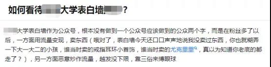 由于“表白墙”运营门槛低、不需要授权,越来越多的群体受到经济利益驱使,把手伸向“墙”等各类校园自媒体,假借学校的名义,甚至通过低俗炒作、虚假宣传骗取流量,中饱私囊,以学校和师生的名誉为代价,为运营团队牟利。