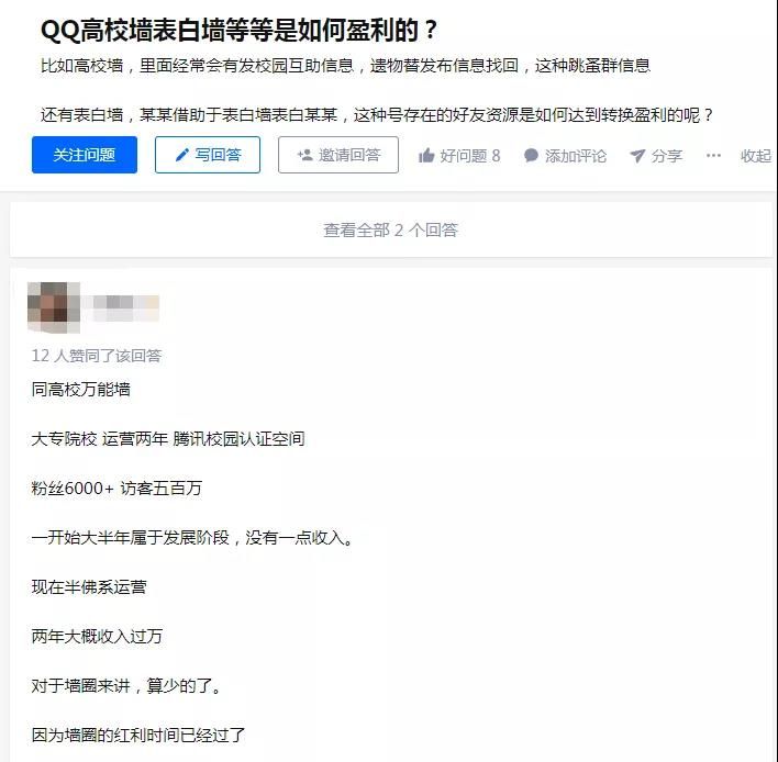 这些私人掌握的“表白墙”账号通常在积累了一定的关注者过后,便开始想方设法将校内学生带来的流量变现,采取多种方式进行盈利。