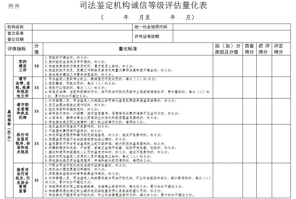 司法部关于印发《司法鉴定机构诚信等级评估办法(试行)》的通知