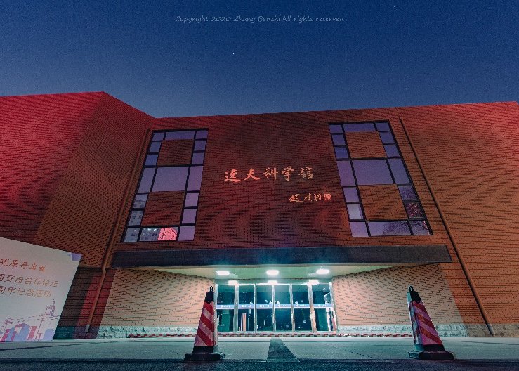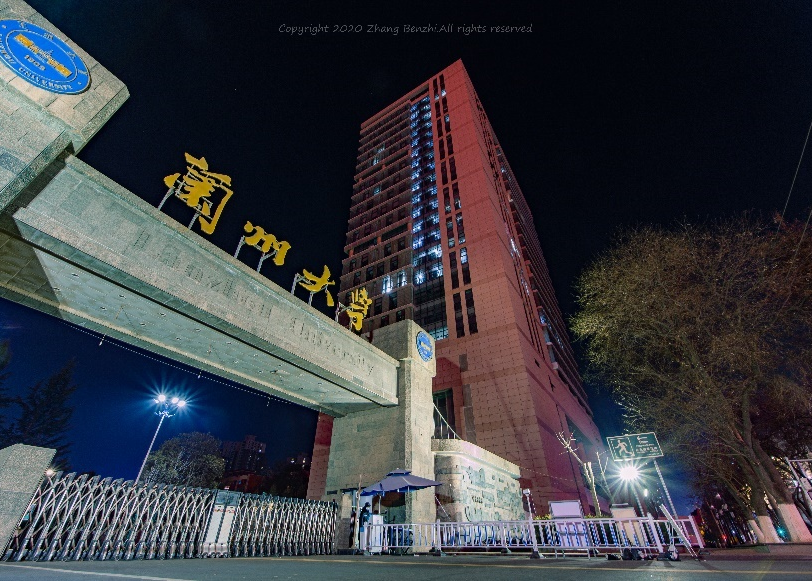 与白天生动的校园比起来,夜晚的静谧同样迷人,观云楼的玻璃会投射出蓝绿色的灯光,天山堂的天空有时会呈现出淡紫色,晴朗的夜晚在逸夫科学馆的门前抬头便可以看到繁星点点,寒冷的冬季校门依然有灯光和保安叔叔的守候,新竹苑前的暖色灯光、医学实验楼门前的日晷与星空梦幻联动……这些既是记录光影色彩的照片同时又是一页页记录兰大生活里的些许感动的日记。