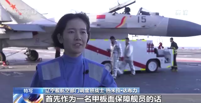 辽宁舰航空部门调度班战士 热米拉·达布力:就是因为它难,然后就是想挑战一下,跟歼-15大概就是离得最近的位置,然后看看它放飞,然后回收。这种感觉就很真实。当它放飞成功的时候,我就觉得很有成就感,很自豪。是我保障的歼-15,它又成功起飞了,就有这种感觉。