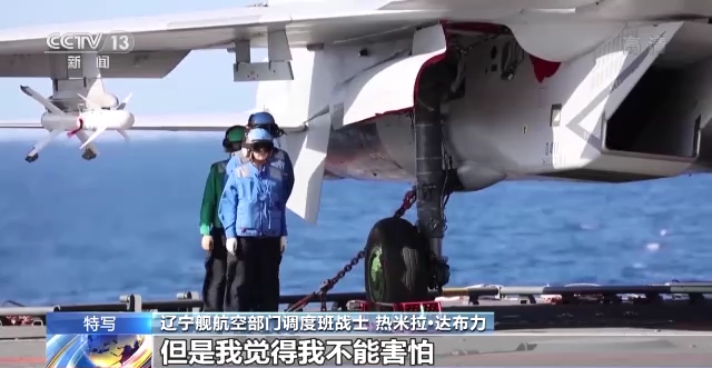 辽宁舰航空部门调度班战士 热米拉·达布力:它那个系留索挂在歼-15上的时候,要是开车系留索会绷得很紧,它要是绷断了我该怎么办?因为我当时就站在旁边,我想过这种后果,但是我觉得我不能害怕。