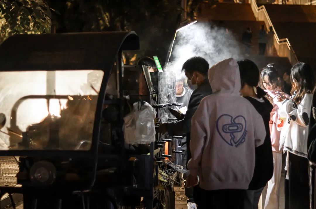 大学西门美食街的众多摊点里,最显眼的是一辆黄色的小餐车。老板是一位五十多岁的大叔,不炒面的时候就戴上老花镜坐在板凳上刷会儿视频。这家炒面摊回头客挺多,因为价格实惠分量也足,大叔总爱边颠锅翻炒边跟顾客唠嗑,但他说话总是不紧不慢的,带着些斯文气。有一次等餐的时候跟大叔聊上了,他说自己上过高中,那个年代农村学生能上高中是稀事。但是遇上父亲生病,家里垮了半边,“我是老大,我得扛起来啊”,后来他就辍学打工以维持生计和照顾弟弟妹妹了。大叔说得风轻云淡,我却多了一丝心疼跟无奈。
