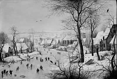 老彼得·勃鲁盖尔作品《有滑冰者和捕鸟器的冬景》