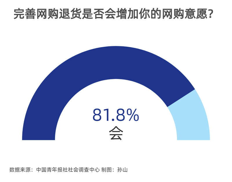 调查中,81.8%的受访者表示完善网购退货会增加自己的网购意愿。