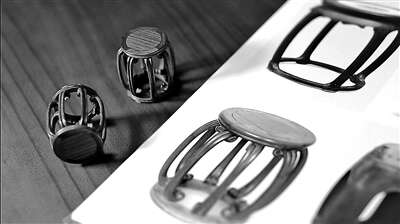两年后,李元卓进入雕刻厂工作,主要负责绘制家具图纸。他举例说,比如工厂要制作一把1.1米高的椅子,他必须将大家具缩小比例,用11厘米的大小在一张A3纸上画一组三视图。通过这项工作,李元卓清楚地了解到了家具的结构,掌握它们是由什么固件构成,以及互相之间怎样能够串联在一起等问题。在李元卓看来,图纸上画下的10厘米左右高的家具也可以称之为微缩家具,这是他接触微缩家具的第一步。