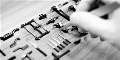 李元卓从没有放弃过制作微缩家具,这是一种“戆劲”。他形容自己像是练功一样,每制作一件家具就是一次挑战,从简单到复杂,从容易至困难,自己的制作工艺越来越熟练。随着每次制作后反馈给自己的经验,他逐渐对制作的难易点有更清晰的了解,比如工具的难点在于不要用特别硬的钢材,中碳钢更适合用于雕刻红木;又比如雕刻时要顺着木材的纹路,且要精准测量,失之毫厘就有可能推翻整个作品。