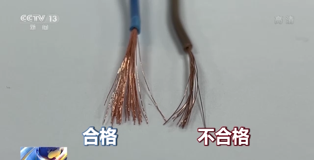 可以看到不合格的电源线比合格电源线整体线径要细很多,其电源线的根数仅为合格产品的三分之一左右,而单根电源线也更细。