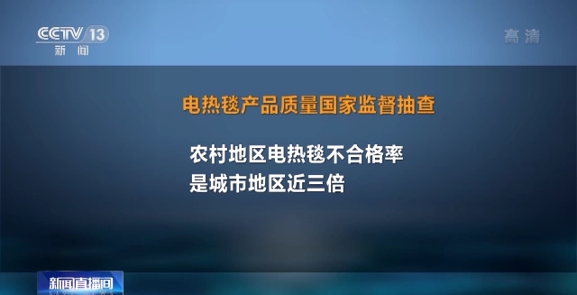 除此之外记者发现,这次电热毯产品质量国家监督抽查涉及农村流通领域产品32批次,其中发现4批次不合格,产品不合格发现率12.5%;城市流通渠道采样的64批次电热毯中,有3批次不合格,产品不合格发现率4.7%。农村地区的电热毯不合格率是城市地区的近三倍。