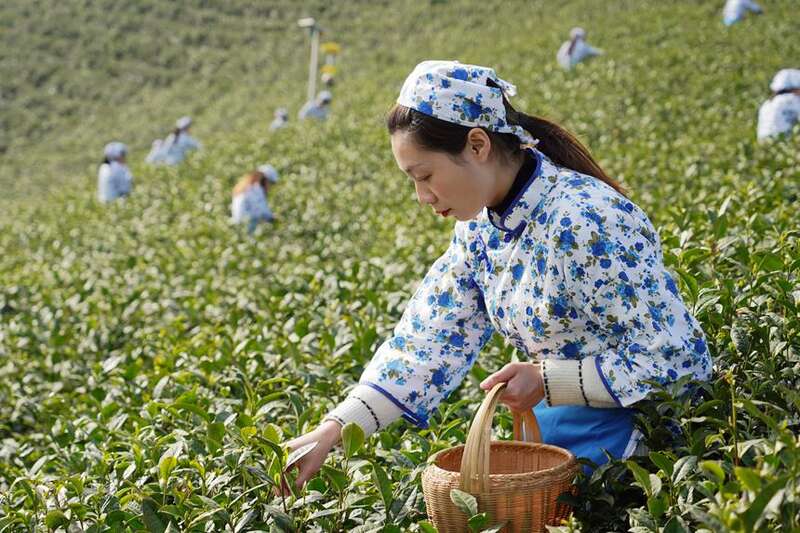 河南信阳:万亩茶山披绿装 毛尖采摘正当时