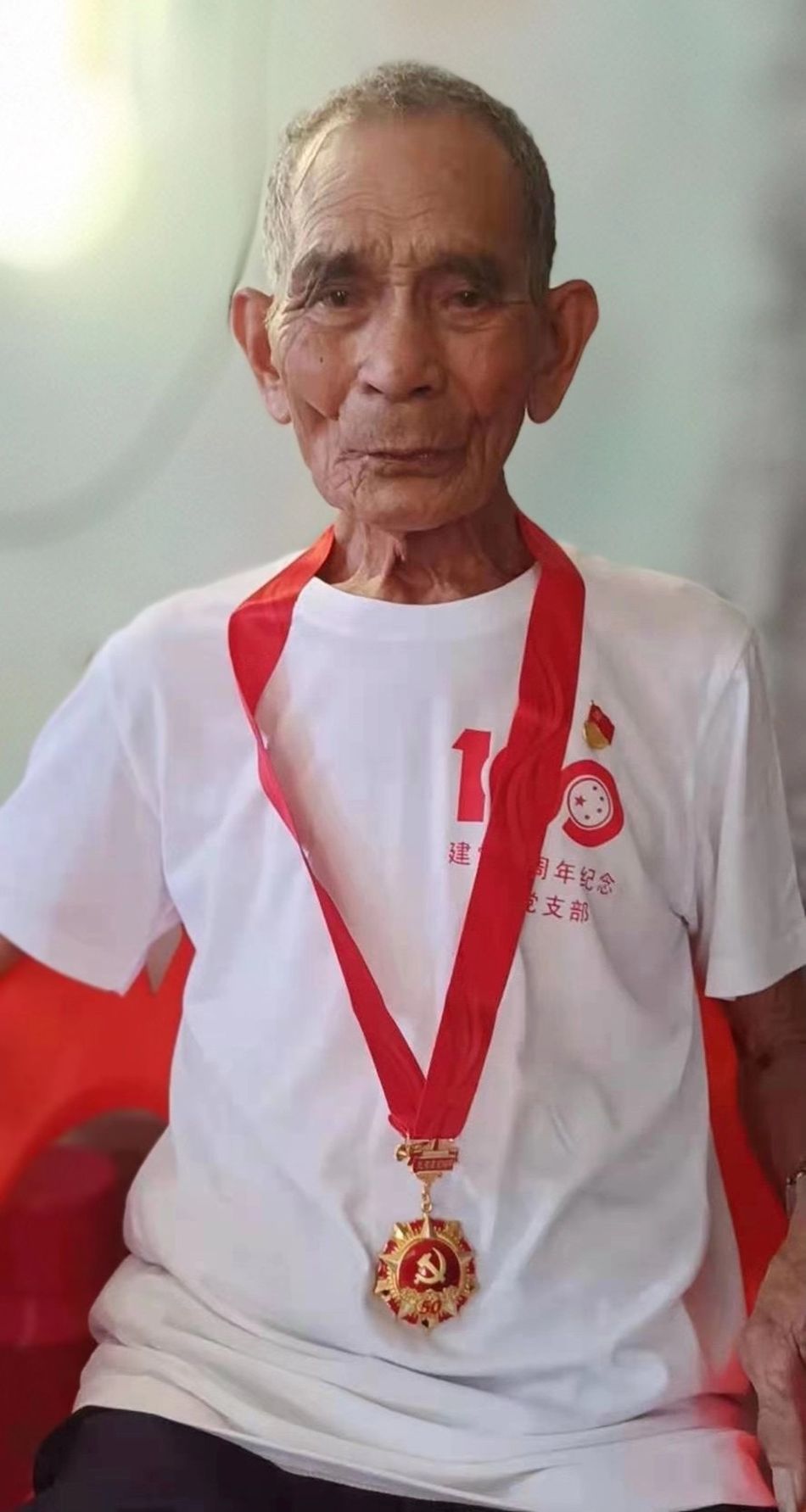 这位年近百岁的老人,胸前多了两枚崭新的勋章——“光荣在党50年”纪念章、南粤“七一”纪念奖章。