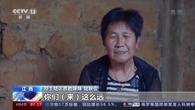 烈士陆达胜的妹妹 陆秋 :万万没想到。你们(来)这么远,还不是说在县里,不是说在乡里,而是隔山隔水隔几个省来找我们烈属。