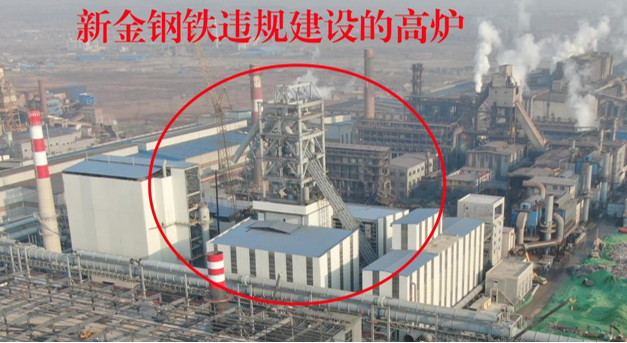 今年2月,督察组前期暗查使用无人机拍摄,新金钢铁在未取得相关审批手续情况下违规建设高炉。(督察组供图)