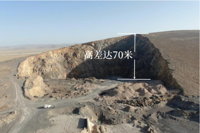 今年4月1日,督察组现场督察发现,中建交通建设工程(西藏)有限公司1号砂石料场野蛮开挖作业,形成一个高差达70米的巨大垂直剖面。(督察组供图)