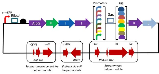 之后课题组使用启动子-绝缘子-RBS策略来提高在Streptomyces lividans的AMP产量,发酵浓度达到52 mg L-1,比原始菌株提高了500倍(图3)。