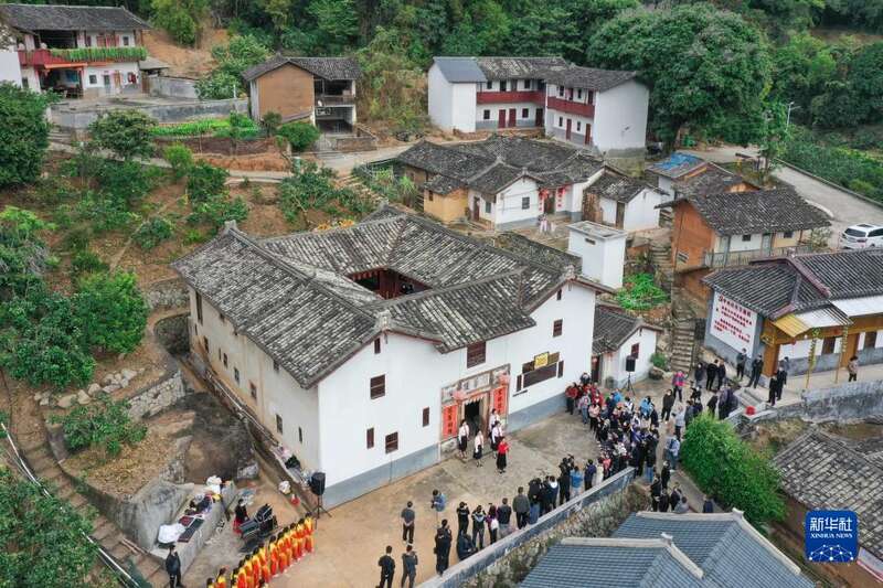 这是广东梅州大埔县青溪镇红色遗址棣萼楼。这座典型的客家围屋建筑曾经是中央红色交通线大埔中站辖区内的一个重要交通站和秘密仓库(1月9日摄,无人机照片)。