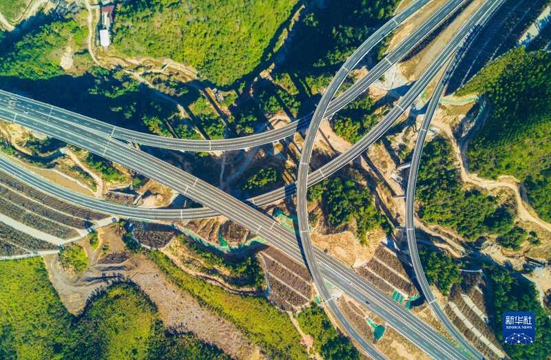 这是2021年1月21日在梅州市境内拍摄的大潮高速塘尾互通立交(无人机照片)。作为广东省“十三五”期间规划建设的粤东北山区脱贫路,大潮高速通车后全面打通梅州出海快速通道,串连起老区苏区红色旅游资源。