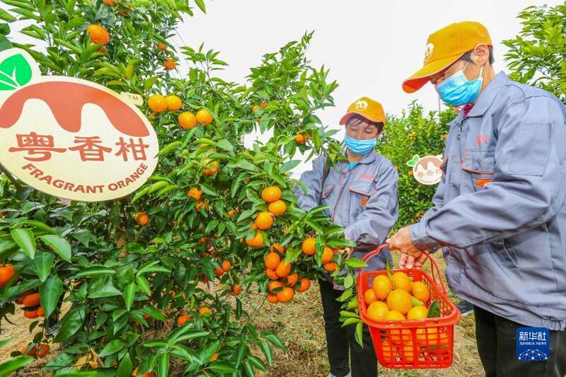 广东梅州兴宁市的果农在采摘“粤香柑”(2020年12月26日摄)。兴宁市积极培育“一村一品、一镇一业”支柱产业,发展特色农业助民增收。