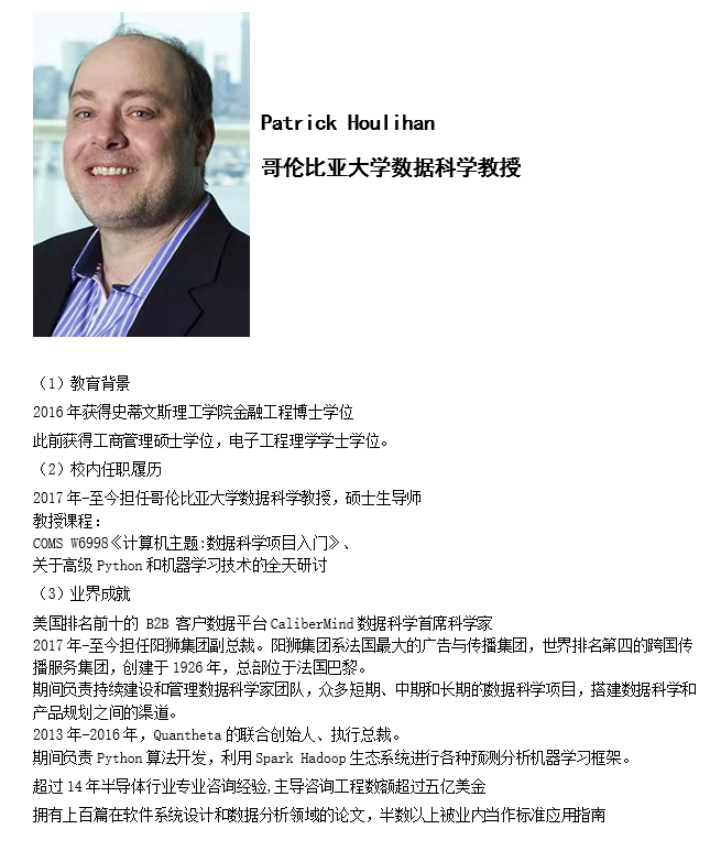 《Data Analysis in Social Science》和《Technologies of Artificial Intelligence》是健行学院精心开设的两门国际化课程,分别邀请哥伦比亚大学CaliberMind数据科学首席科学家Patrick Houlihan和卡耐基梅隆大学计算机科学学院机器学习教授Pradeep Ravikumar担任主讲。