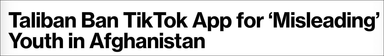 阿富汗塔利班封禁TikTok和《绝地求生》
