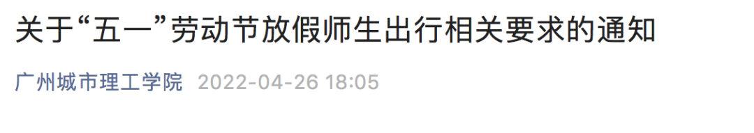 4月26日,广州城市理工学院发布《关于“五一”劳动节放假师生出行相关要求的通知》。