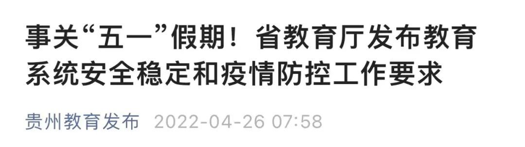 贵州省教育厅:师生员工“五一”期间可在省内活动