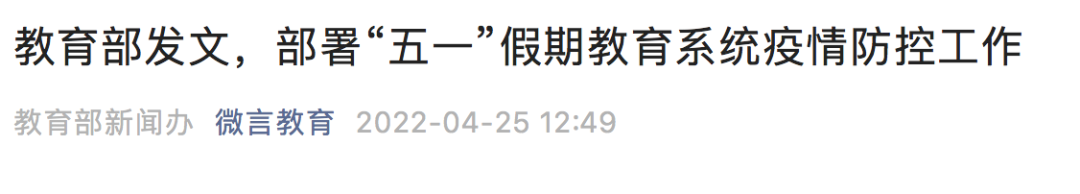 此前,教育部25日的通知要求,各地教育部门和高校要精准掌握师生健康状况和出行去向,向教师、学生、家长告知离校注意事项和假期疫情防控要求,指导师生遵守学校所在地和出行目的地疫情防控规定。要强化校园服务保障,充分保障“五一”假期留校师生学习、科研、工作和生活需求。