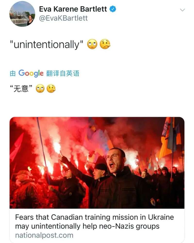 看到加拿大媒体说“担心加拿大在乌克兰的训练团可能会无意中帮助新纳粹团体”,她立马划重点——“无意”️,内涵对方在说谎↓↓