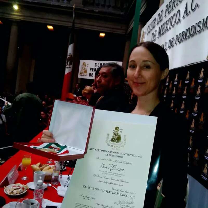 同年3月,她被墨西哥记者新闻俱乐部授予“国际报道国际新闻奖”。