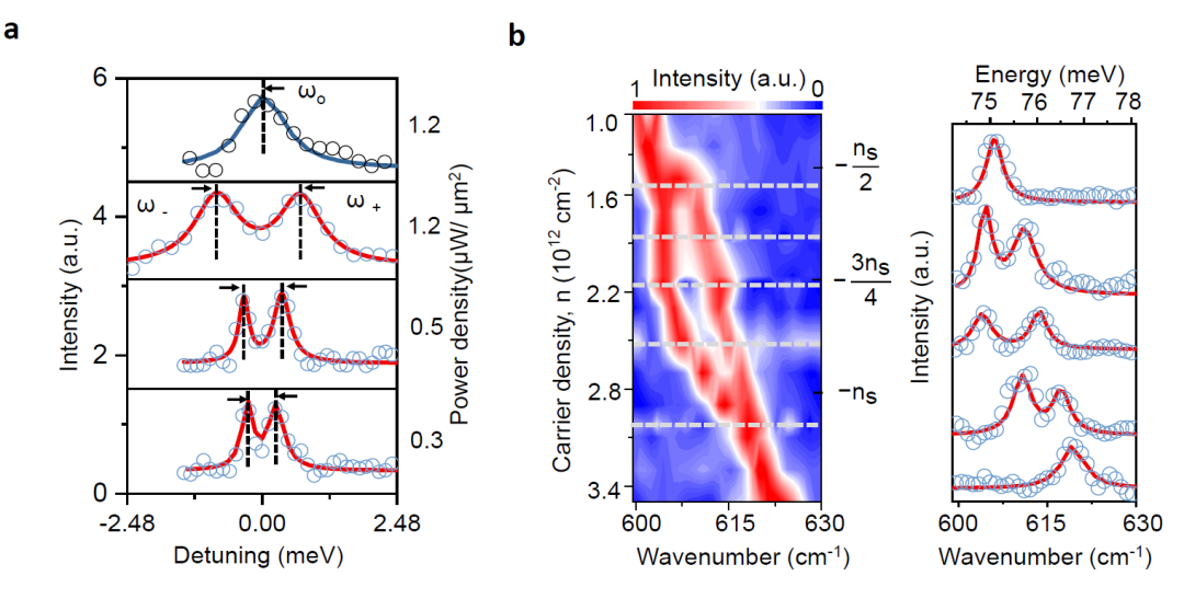 图2 光照强度(a)和静电掺杂(b)对手性贝利等离激元边缘模式共振能级劈裂的调控作用。