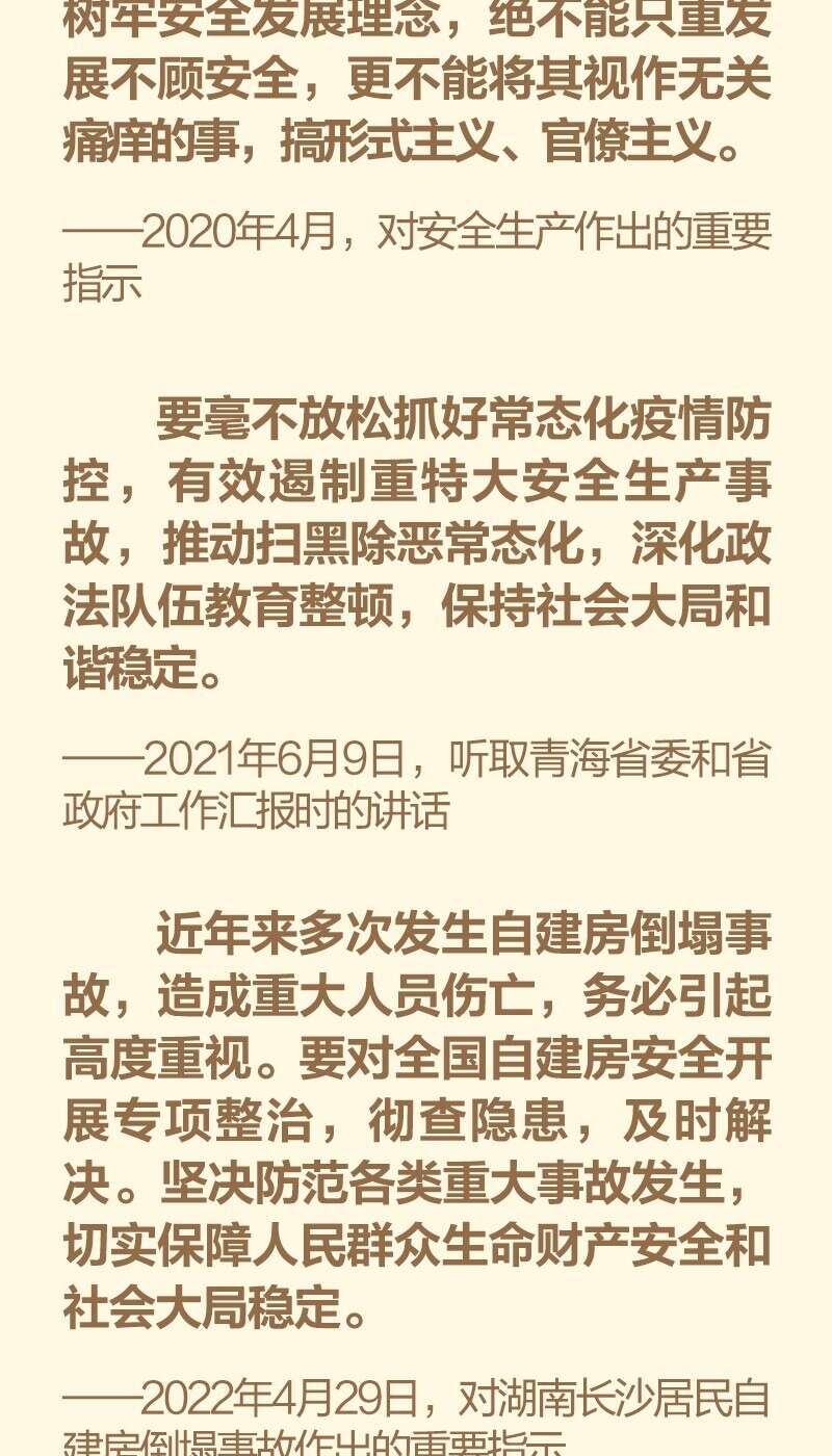 安全稳定工作连着千家万户。当前,国内外环境深刻变化,我国来自各方面的风险挑战明显增多,安全生产形势也更趋严峻复杂。央视网《联播+》特推出长图解,与您一起重温总书记关于安全生产的重要论述,牢牢守住安全生产红线,提高安全生产意识。