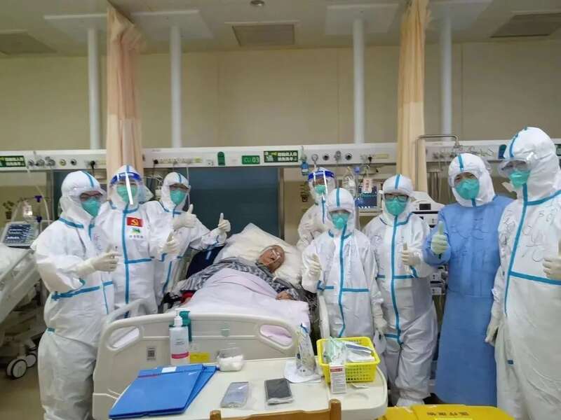 考虑到老人已经108周岁,经中山医院专家钟鸣、国家督导组专家等开展病例讨论后,一致决定不插管,给予经鼻高流量湿化氧疗。这对护理提出更高要求。大家用身体语言、用温暖的眼神让老人家放宽心。经过一系列精心治疗,叶鸣老人一天天好转起来。