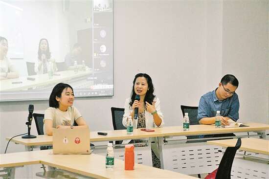 讲座现场,从左至右依次是高旭、冯娜、唐诗人