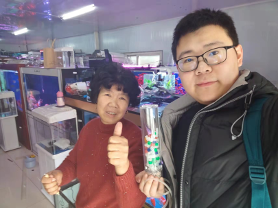 团队在实验室中完成了10余个装置制作,并将这些装置免费发放给了养鱼的居民、水族店进行试用,得到了用户的良好反馈,水族店王老板说:“真心觉得你们的设计不错,要不还是说你们大学生厉害呢,省了我很多事儿!”水族爱好者宋先生说:“我都半年没换水了,很好很美观,而且对鱼儿也没什么影响,特别是家中小孩儿特别好奇喜欢。”“目前感觉挺好用的,我亲戚来我家都问我来着,说这个装置挺好的,他们也想试试”......